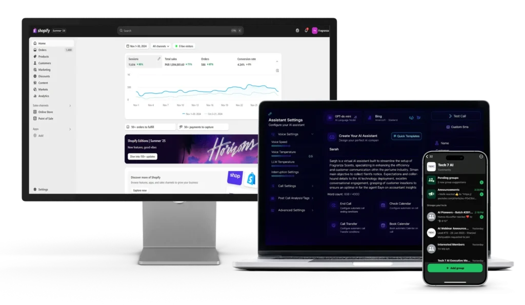 Mr. Hammad Bin Asad – CTO at Tech 7 Group, Lead Developer of Voxiqo, 3+ years of AI Automation Experience. Mr. Muhammad Ibrahim Sahibzada – CMO at Tech 7 Group, 10+ years in digital marketing, 5+ years in e-commerce and AI. Led multiple successful online stores and product launches.